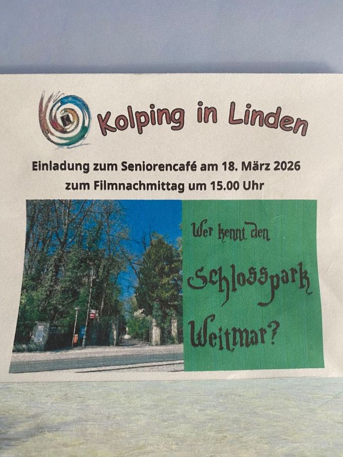 Die Kolpingsfamilie Bochum-Linden lädt zu einem gemütlichen Filmnachmittag bei Kaffee und Kuchen in den Katecheseraum (EG) des Gemeindezentrums Liebfrauen ein. Das Thema lautet: "Wer kennt den Schlosspark Weitmar?". Moderator ist Manfred Bucher.