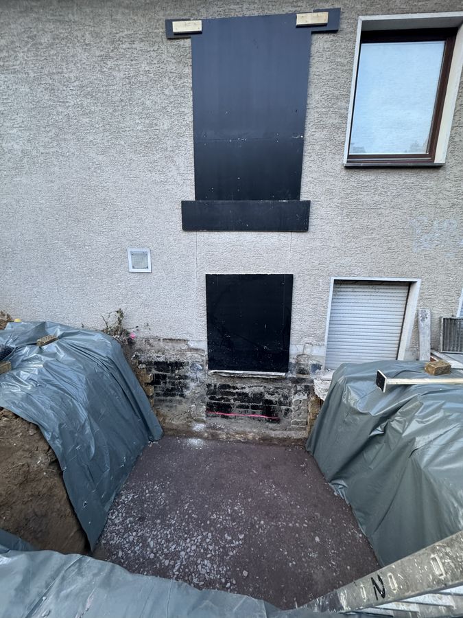 Wie bei jeder Baustelle, so gibt es auch hier Unvorhergesehenes. Nachdem die Fenster im Flur oben und auch unten entfernt wurden, trat ein Elektrokabel zu Tage, von dem zwar klar ist, wo es herkommt, aber nicht genau, wo es hinführt. Zur Klärung und auch zur Umlegung des Kabels wurde bereits ein Elektriker beauftragt, der sich der Sache in den nächsten Tagen annehmen wird.