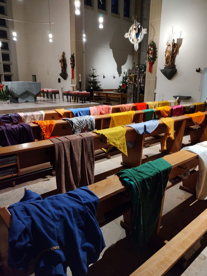 Unterstützung erfuhren die Sternsingerinnen und Sternsinger durch andere Kinder und Jugendliche der Gemeinde. Die Messdiener kümmerten sich um die Organisation der Gewänder: eine Mammutaufgabe. Die kjG (katholische junge Gemeinde) sorgte an beiden Aktionstagen für Essen und Trinken im Pfarrsaal. Man konnte sich aufwärmen und ausruhen. Ein großer Maltisch stand zur Verfügung. Die Pfadfinder (DPSG) verwöhnten die Straßenläufer nach dem lebendigen Gottesdienst am ersten Sonntag des neuen Jahres mit frisch gebackenen Waffeln. Viele Kinder haben den Gottesdienst mitgestaltet. Großer Dank an Messdiener, KjG und Pfadfinder! Ebenso geht unser Dank an alle Kinder und alle Erwachsenen, die geholfen haben. Es waren viele helfende Hände, auch aus dem Gemeindebüro, ohne dessen Unterstützung eine solche Aktion kaum durchführbar wäre.