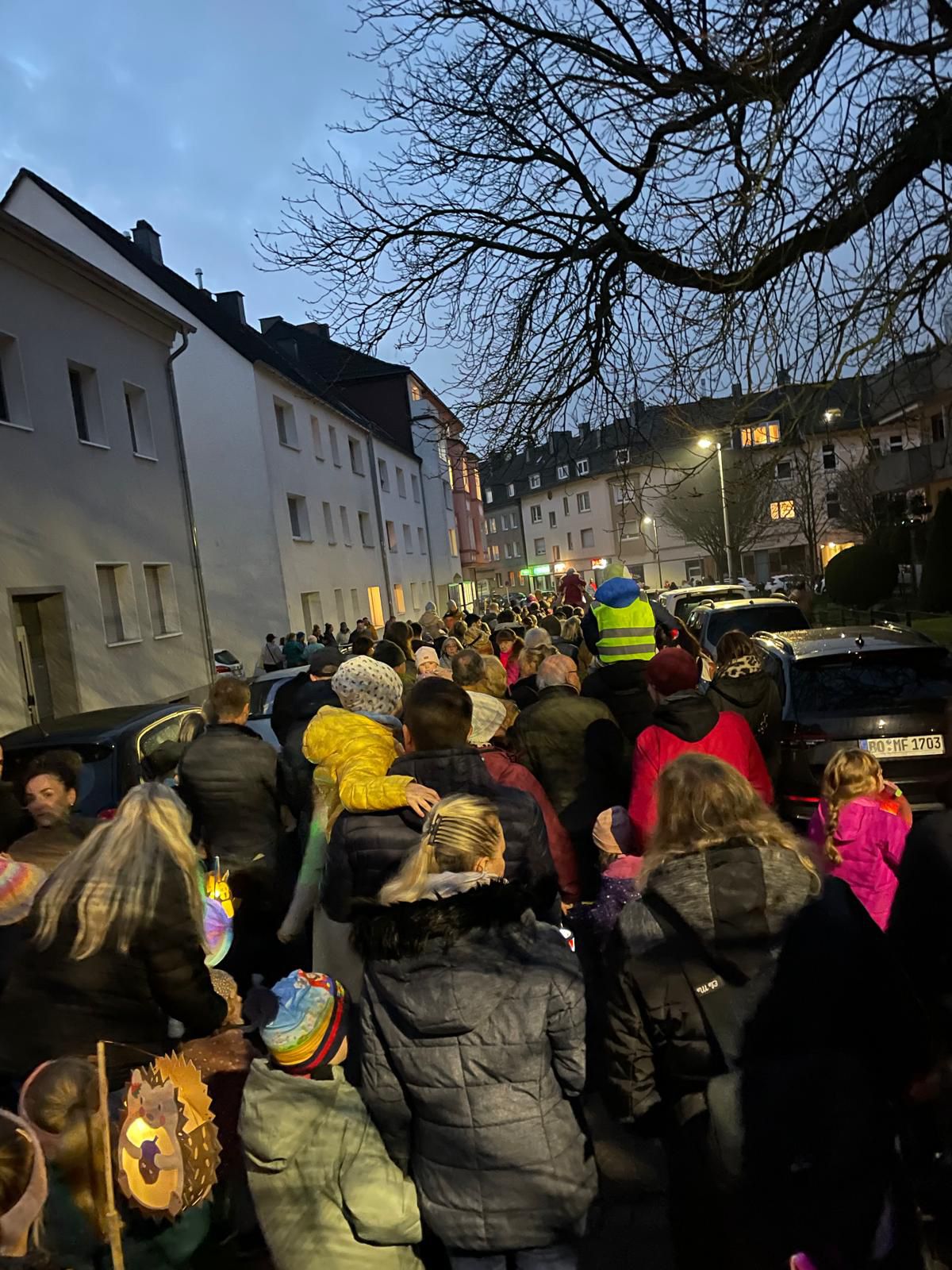 Bereits zu Beginn konnten alle Helfer feststellen, dass der Martinsumzug sehr gut besucht war. Die Kirche war bis auf den letzten (Steh)Platz gefüllt und selbst vor der Kirche standen noch zahlreiche Besucher. Beim anschließenden Umzug hinter Martin auf dem Pferd entstand der Eindruck: Der Zug nimmt ja gar kein Ende. Als die ersten Besucher bereits wieder von der Wasserstraße in die Franziskusstr. abbogen, waren die letzten gerade einmal vom Gosepötken in die Wasserstraße eingebogen.